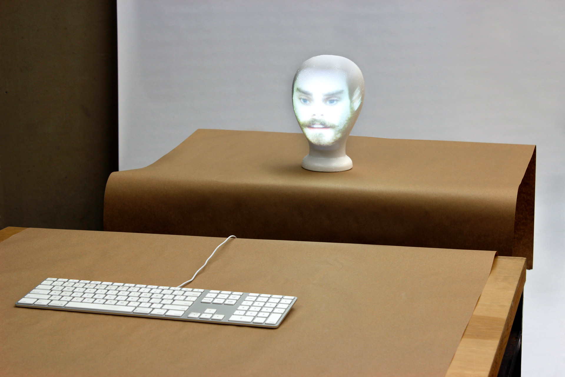 Users spelled out words or sentences via a keyboard, and upon pressing a key, instantly heard the sound of the letter pressed. Additionally, a projected face mouthing these letters appeared as visual feedback.